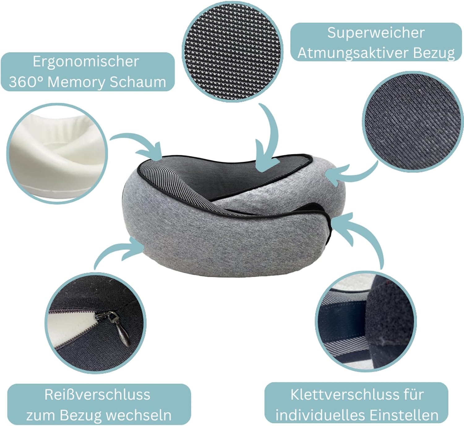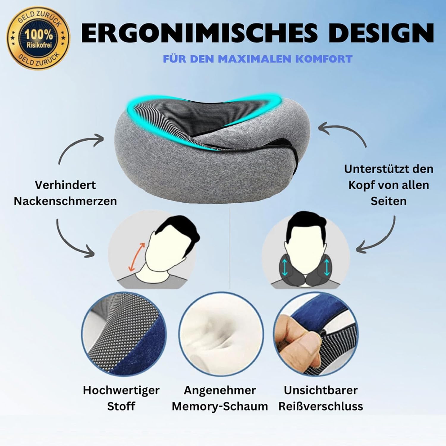 Our innovative neck pillow was designed to relieve all critical areas of your body during sleep: the neck, head, shoulders, and arms. With its targeted support zones, it perfectly adapts to your sleeping position and ensures a relaxed night—completely free of tension.