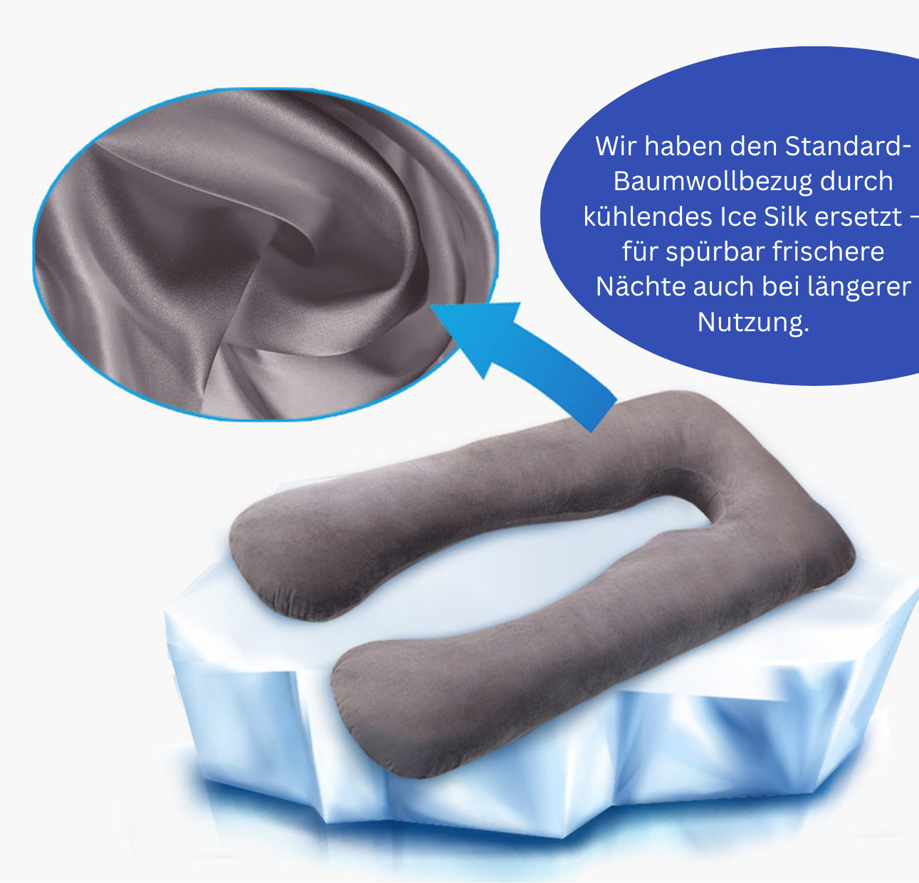 Egal ob Sie ein Baby erwarten oder einfach eine weiche Stütze suchen – dieses Kissen passt sich an. Ice Silk kühlt, die Füllung stützt ohne hart zu sein. Ihr vielseitiger Begleiter für erholsamen Schlaf!